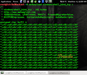 Now we require the payload (shellcode). It can be generated using msfpayload